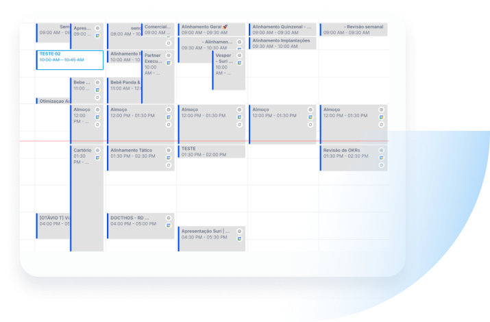 Todos os dados — agendas, contatos, tarefas, mensagens e análises — estão conectados. Os membros da equipe trabalham em um espaço sincronizado, recebem notificações em tempo real e têm visibilidade sobre o progresso das atividades, sem falhas na comunicação.